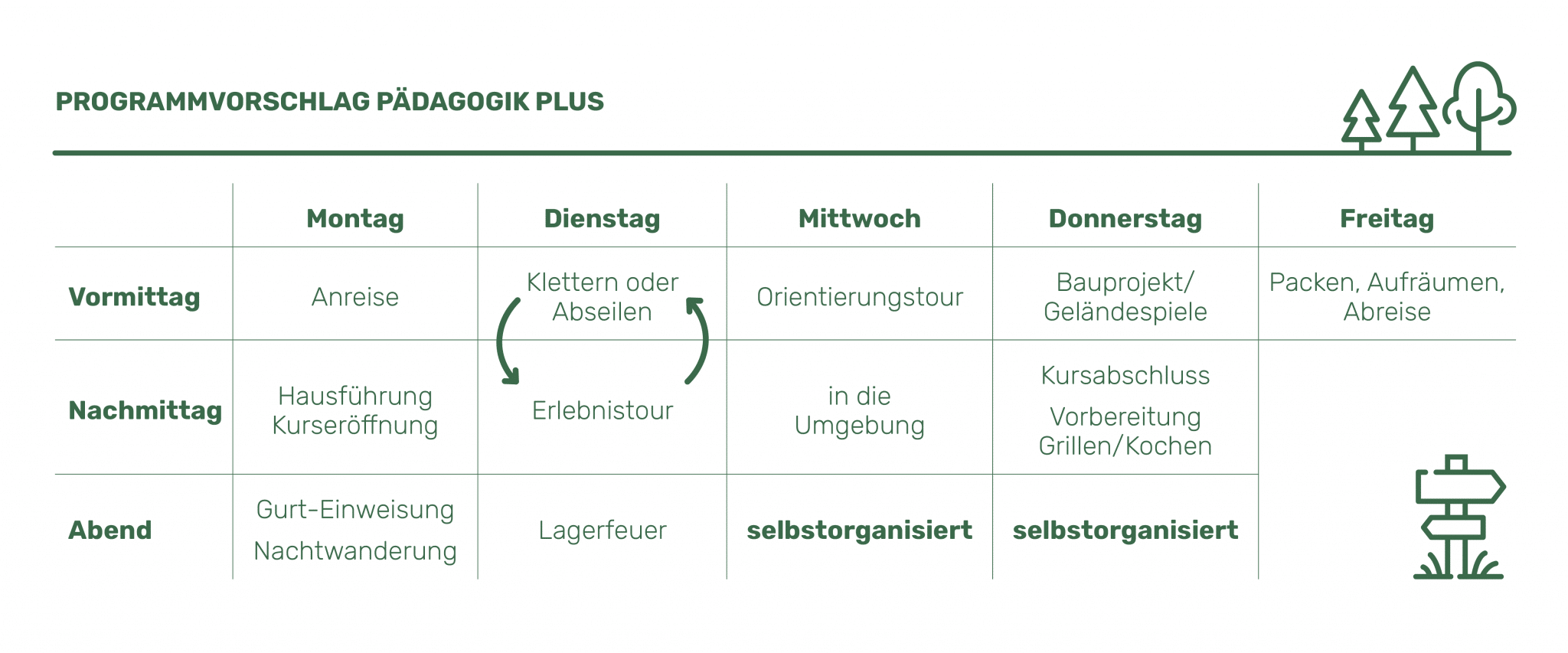Vollverpflegung, Unterkunft und volles Programm von Montag bis Freitag durch unsere Teamer!